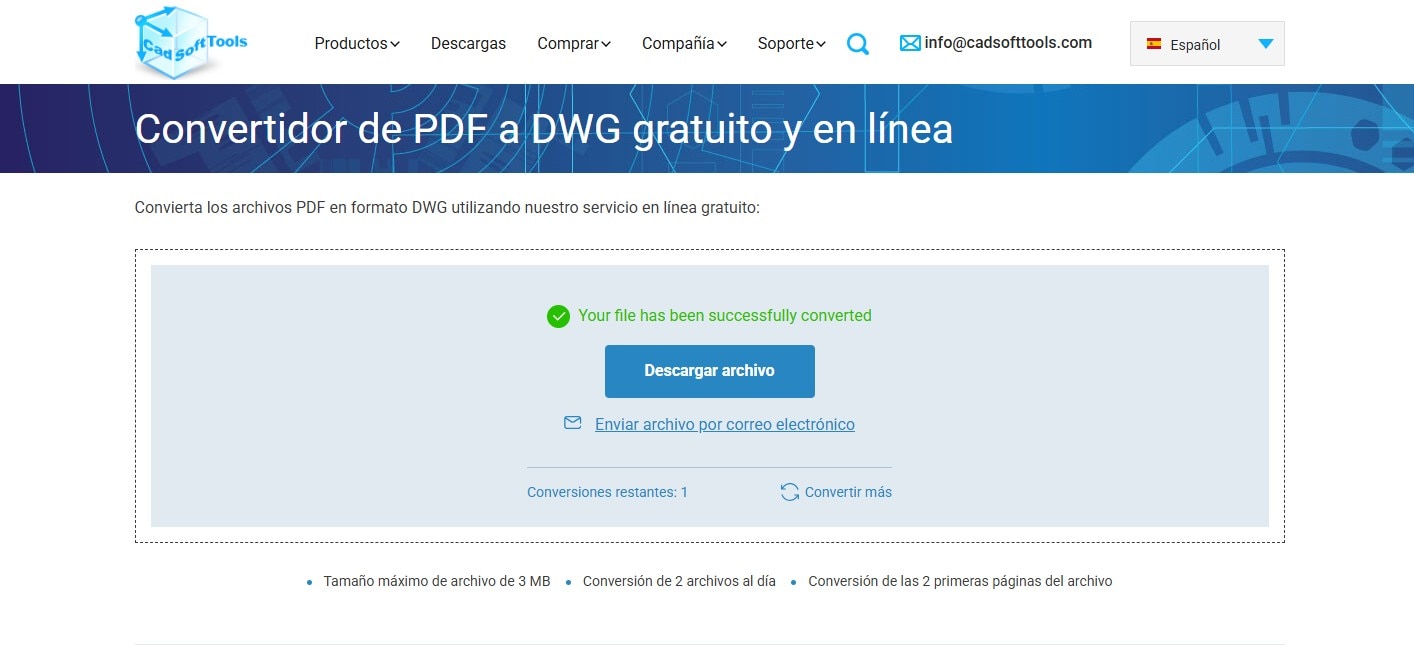 La herramienta es una solución confiable para cualquier persona, incluidos los que no son expertos en tecnología, y siempre puedes contar con ella para convertir tu PDF a DWG sin perder tiempo. Sin embargo, ten en cuenta que su versión gratuita solo te permite convertir un archivo PDF que no supere los 3MB.