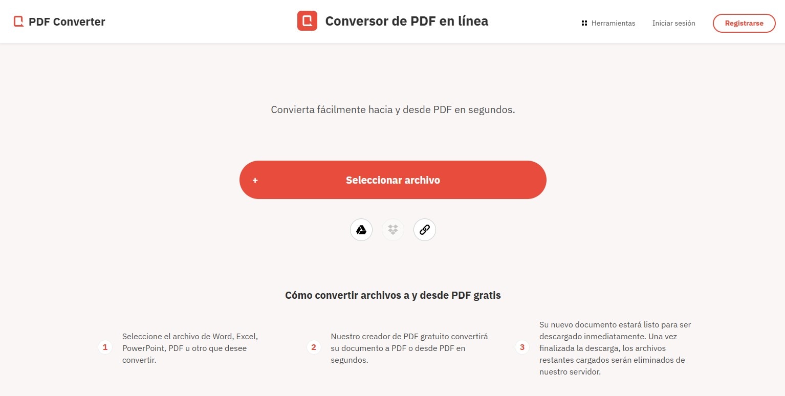 Puedes subir documentos directamente desde Dropbox o Google Drive. Esta herramienta es completamente gratuita y no tiene costos ocultos.